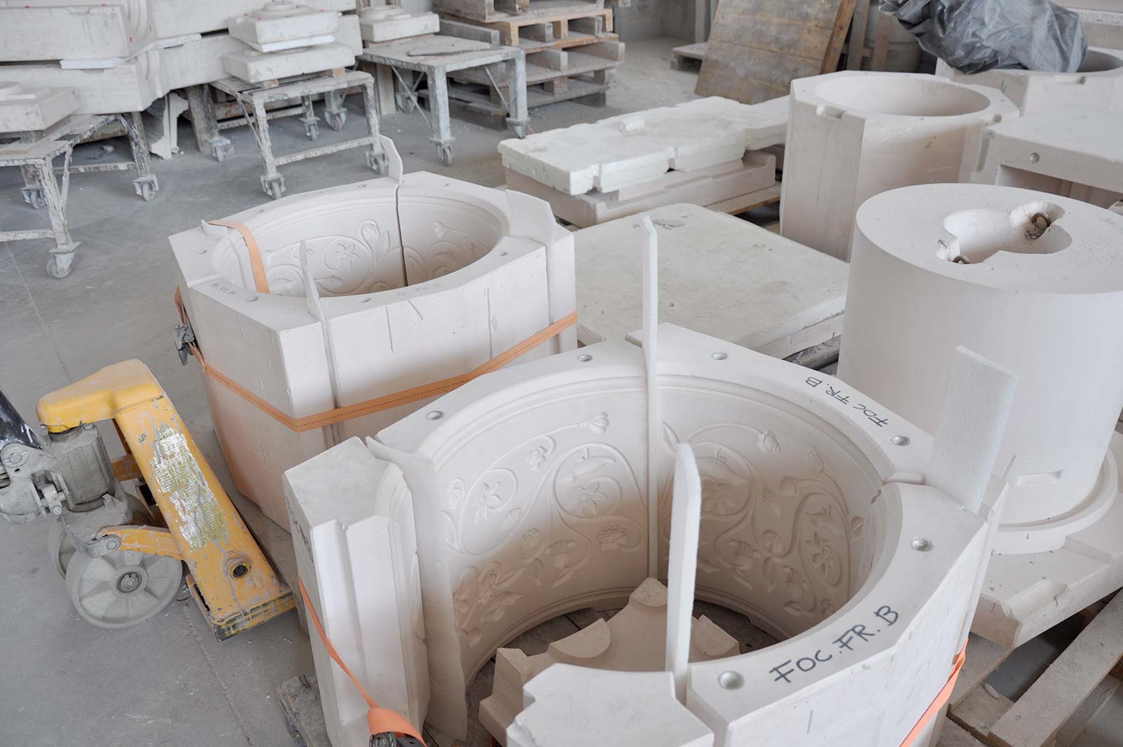Pannelli, formelle, vasi, colonnati, balaustre, comignoli, coppi, fregi ornamentali sono richiesti sia per il restauro di antiche chiese ed abitazioni sia come naturale complemento alla bellezza di nuove costruzioni.